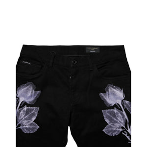 Dolce & Gabbana Black Floral Cotton Skinny Men Denim Jeans