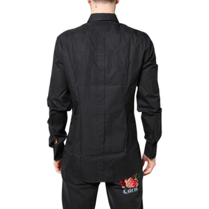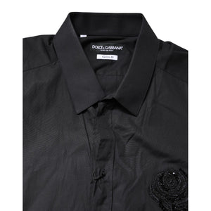Dolce & Gabbana Black Floral Gold Cotton Dress Formal Shirt