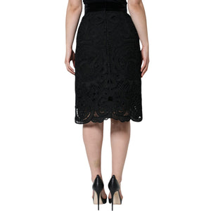 Dolce & Gabbana Black Floral Lace High Waist Pencil Cut Skirt
