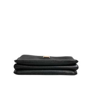 Dolce & Gabbana Black Grain Leather Logo Plaque Clutch Bag