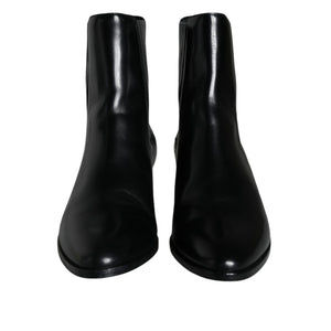 Dolce & Gabbana Black Leather Ankle Boots Booties Shoes