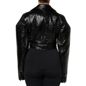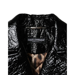 Dolce & Gabbana Black Leather Cropped Long Sleeve Coat Jacket