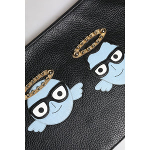 Dolce & Gabbana Black Leather #DGFAMILY Embellished Men Zip Pouch Bag