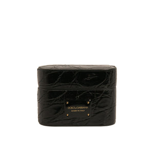 Dolce & Gabbana Black Leather Metal Logo Plaque Holder Airpods Case