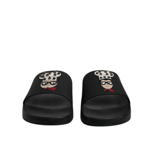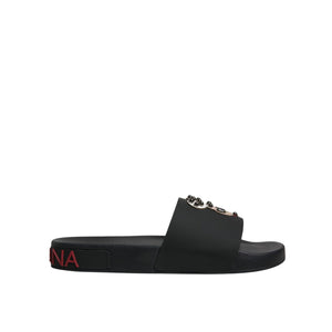 Dolce & Gabbana Black Leather Slides Sandals Beachwear Shoes
