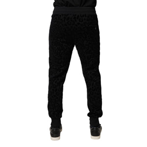 Dolce & Gabbana Black Leopard Cotton Jogger Sweatpants Pants
