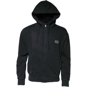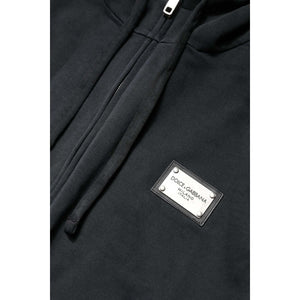 Dolce & Gabbana Black Logo Full Zip Hooded Men Sweatshirt Sweater