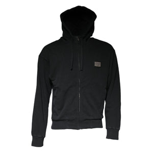Dolce & Gabbana Black Logo Plaque Hooded Full Zip Sweater