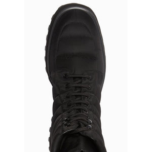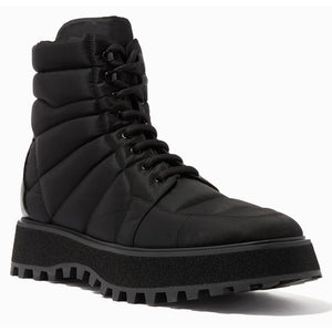 Elevate your footwear collection with the Dolce & Gabbana quilted nylon ankle boots, a testament to superior Italian craftsmanship. These edgy lace-up boots, lined with supple calfskin for luxurious comfort, feature a robust rubber lug sole to tackle any terrain. A perfect blend of functionality and high-fashion, destined to make a bold statement with every step.