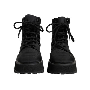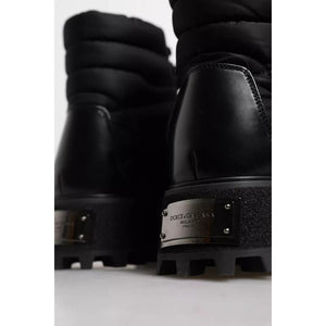 Dolce & Gabbana Black Padded Mid Calf Lace Up Boots Shoes