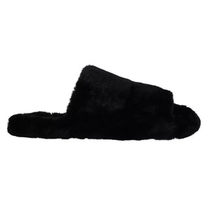 • Dolce & Gabbana Black Polyester Faux Fur Mens Flats Sandals Shoes