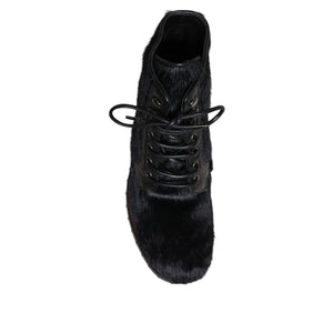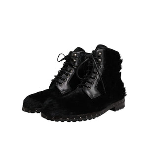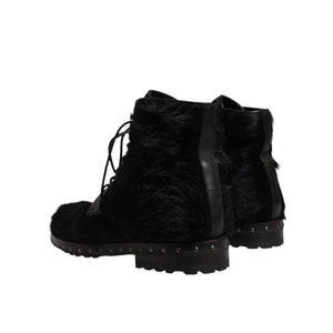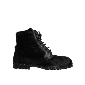 Absolutely stunning, 100% Authentic, brand new with tags Dolce & Gabbana lace up boots featuring upper made of black pony skin leather and sole in super light natural rubber.
