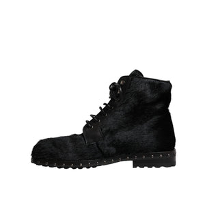 Dolce & Gabbana Black Pony Style Leather Mid Calf Boots Shoes