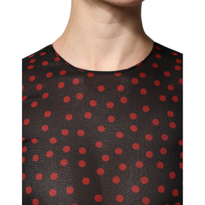 Dolce & Gabbana Black Red Polka Dot Silk Layered Midi Dress