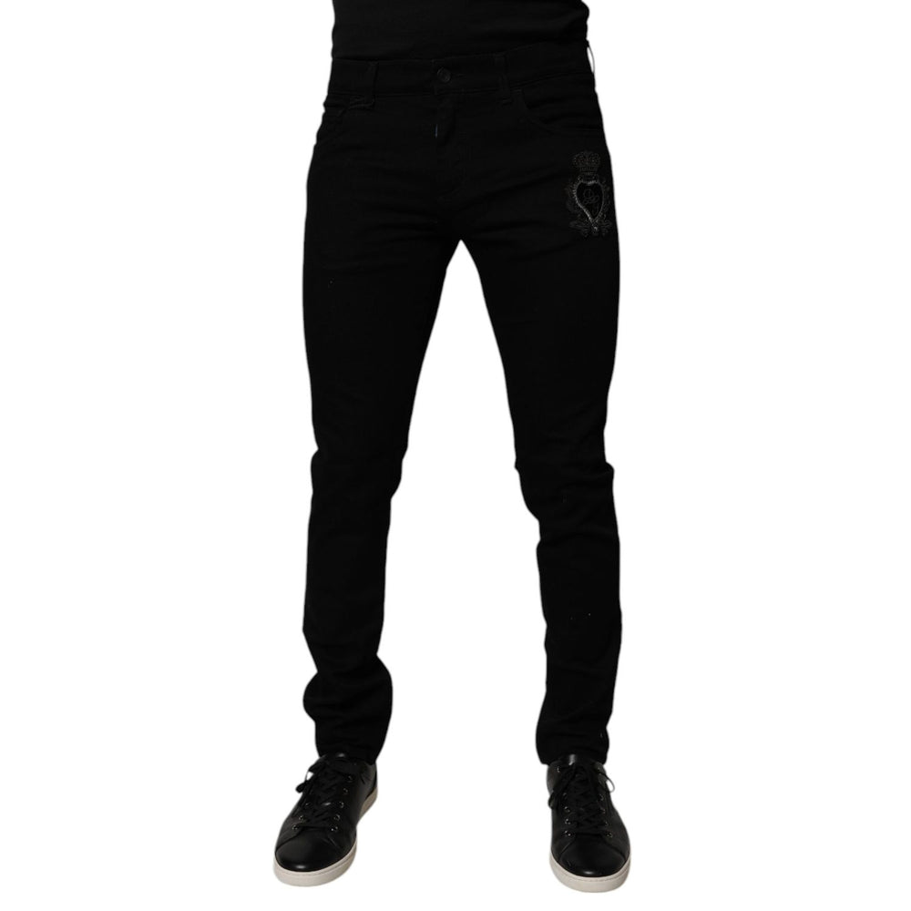 Dolce & Gabbana Black Sacred Heart Cotton Skinny Denim Jeans