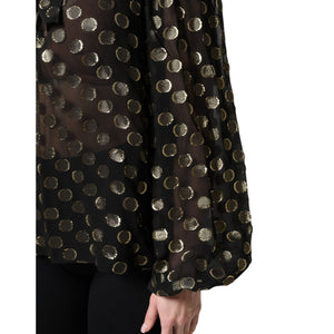 Dolce & Gabbana Black Sheer Tied Neck Polka Dots Blouse Top