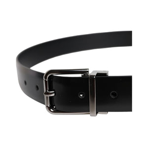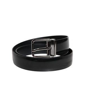 Dolce & Gabbana Black Shiny Leather Silver Metal Buckle Belt