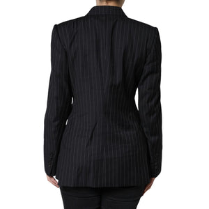 Dolce & Gabbana Black Striped Double Breasted Coat Jacket
