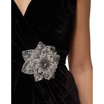 Dolce & Gabbana Black Velvet Flower Embellishment Aline Dress