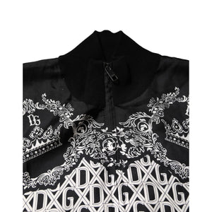 Dolce & Gabbana Black White Bandana Print Full Zip Sweater