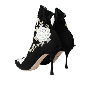 Dolce & Gabbana Black White Embroidery Slip On Boots Shoes