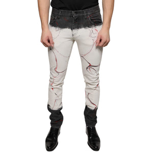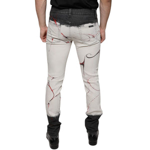 Dolce & Gabbana Black White Printed Skinny Men Denim Jeans
