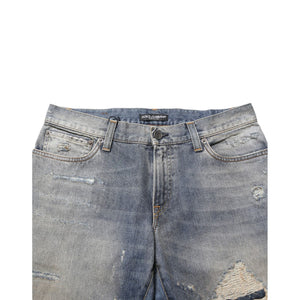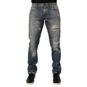 • Dolce & Gabbana Blue Distressed Denim Slim Fit Pants Jeans