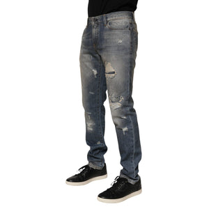 Dolce & Gabbana Blue Distressed Denim Slim Fit Pants Jeans