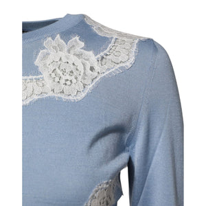 Dolce & Gabbana Blue Floral Lace Detailing Cardigan Sweater