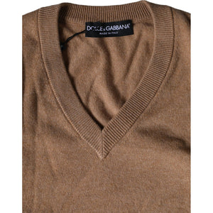 Dolce & Gabbana Brown Cashmere Knit V-neck Pullover Sweater