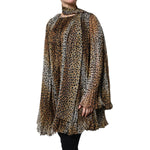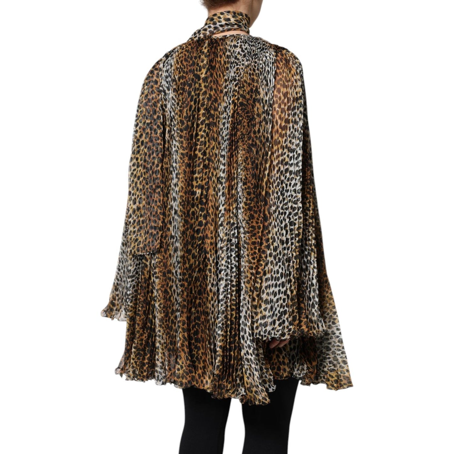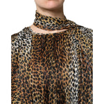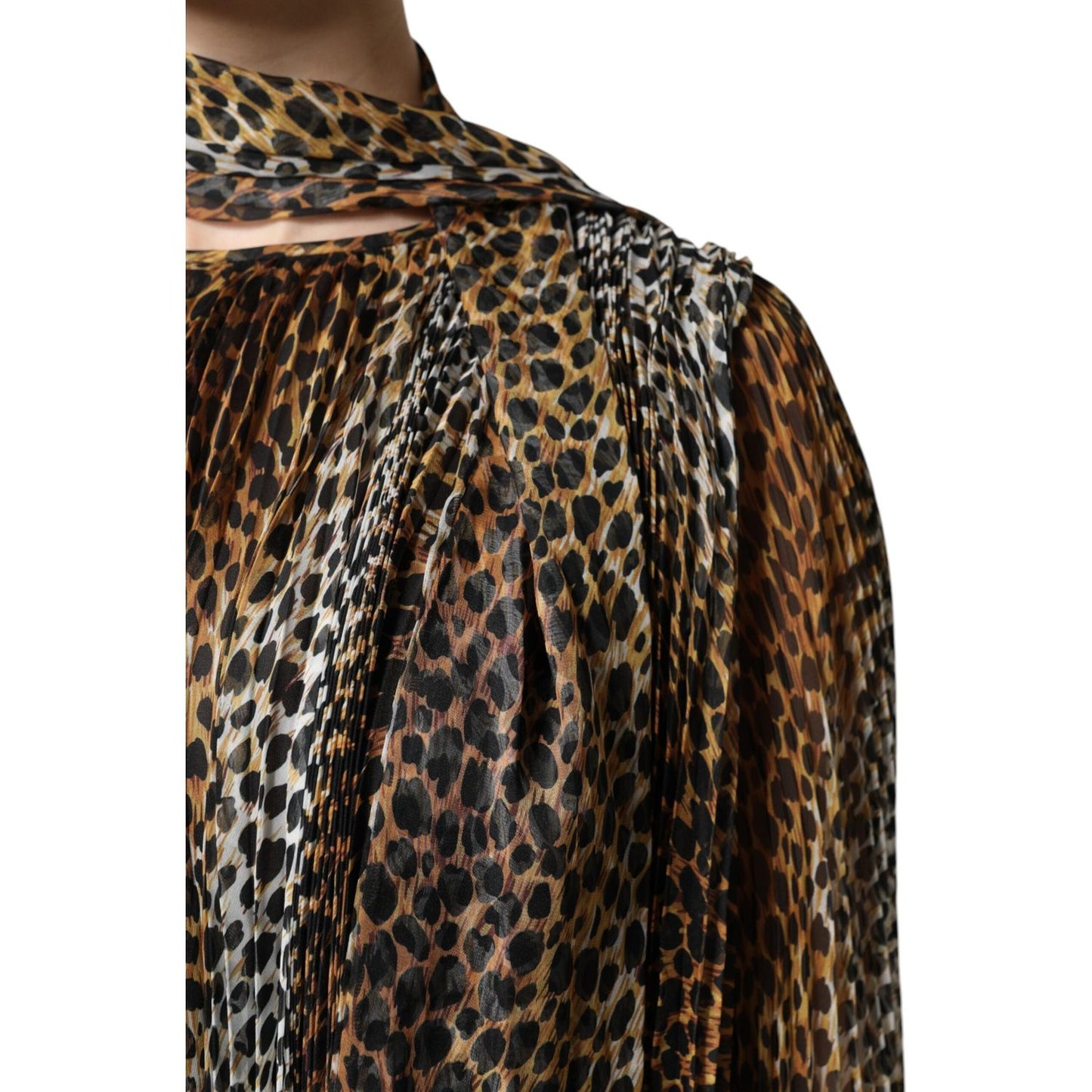 Dolce & Gabbana Brown Leopard Print Scarf Collared Chiffon Dress