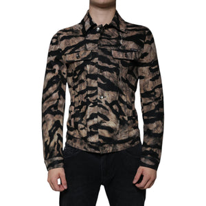 Dolce & Gabbana Brown Tiger Button Down Collared Jacket