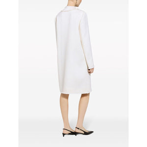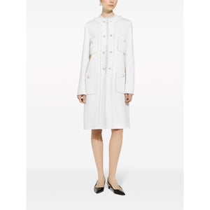 white tweed frayed edge crew neck concealed front fastening long sleeves four front patch pockets knee-length straight hem Wool tweed coat Size and Fit - This piece fits true to size. We recommend you get your regular size. Model is 1,75m / 5ft 8in wearing size 40 (IT)