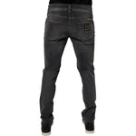Dolce & Gabbana Dark Gray Washed Cotton Slim Fit Denim Jeans
