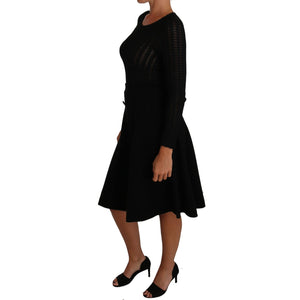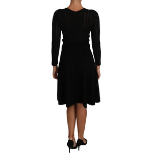 Dolce & Gabbana Black Knitted Wool Sheath Long Sleeves Dress