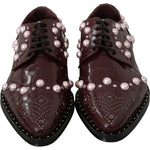 Dolce & Gabbana Bordeaux Leather Crystal Pearls Formal Shoes