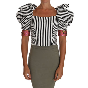 Dolce & Gabbana White Black Striped Cropped Top Puff Sleeve Shirts