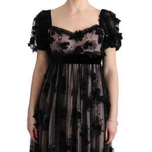 Dolce & Gabbana Black Pink Silk Applique Shift Dress