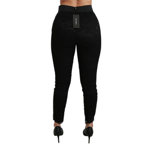 Dolce & Gabbana Black Lace Skinny High Waist Cotton Pants