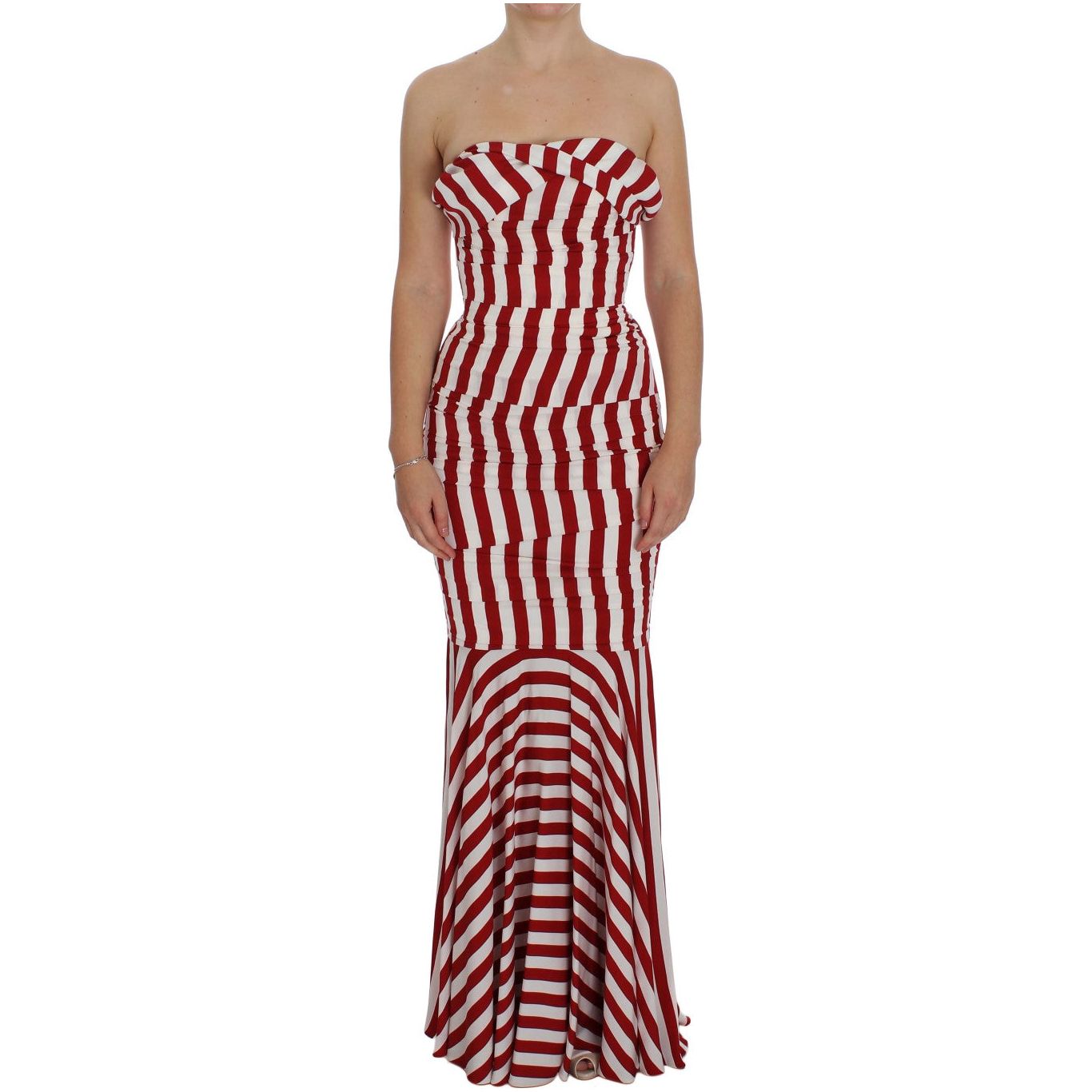 Gorgeous brand new with tags, 100% Authentic Dolce & Gabbana red and white striped silk stretch bodycon dress.