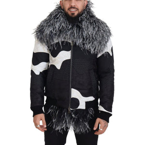 • Dolce & Gabbana Black White Fur Shearling Full Zip Jacket