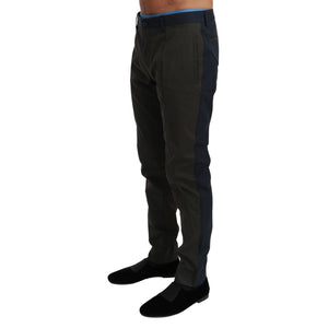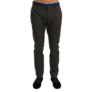Step into style with these exquisite Dolce & Gabbana casual pants. Perfectly tailored to fit slim, they boast a sophisticated gray hue accented by tasteful blue stripes. The blend of cotton and nylon ensures both comfort and durability, making them an ideal choice for both casual and upscale occasions. Crafted with unmatched Italian craftsmanship, these pants feature front and back pockets, subtle logo details, and are destined to make a statement in your wardrobe.