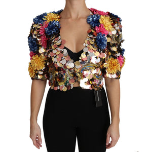 Dolce & Gabbana Crystal Sequined Floral Jacket Coat