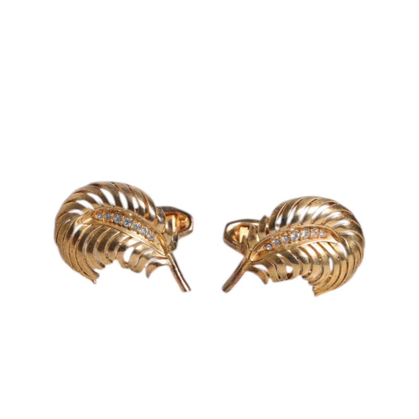 Dolce & Gabbana Gold 925 Sterling Silver Crystal Leaf Accessory Cufflink