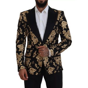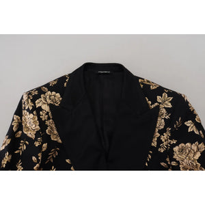 Dolce & Gabbana Gold Black Floral Embroidered Jacket Blazer