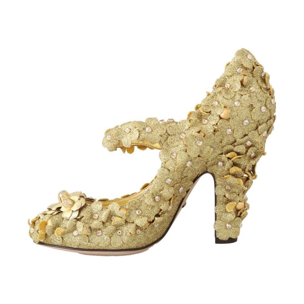 Dolce & Gabbana Gold Floral Crystal Mary Janes Pumps