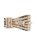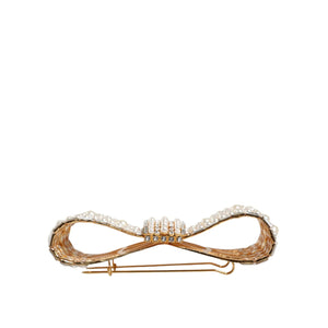 Dolce & Gabbana Gold Tone Brass Bow Crystal FauxPearl Embellished Brooch