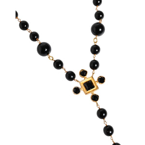 Dolce & Gabbana Gold Tone Brass Cross Black Beaded Chain Rosary Necklace