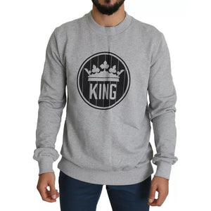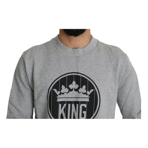 Dolce & Gabbana Gray Crown King Print Cotton Pullover Sweater