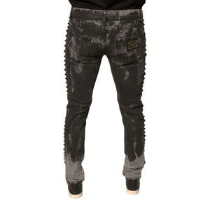 Dolce & Gabbana Gray Embellished Cotton Skinny Denim Jeans